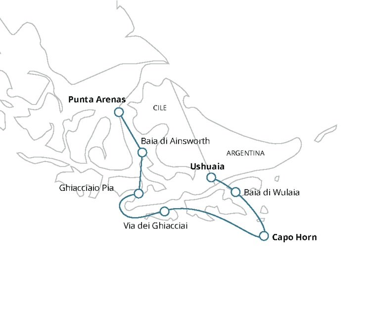 Navigando lungo il Canale Murray e la Baia di Nassau, si raggiungerà il Parco Nazionale di Capo Horn dove si sbarcherà, (condizioni atmosferiche permettendo). Il mitico Capo Horn fu scoperto nel 1616 ed è un promontorio a strapiombo con un’altezza di 425 metri. Per anni ha rappresentato un’importante rotta per i velieri che navigavano tra il Pacifico e l’Atlantico. Conosciuto come “la fine del mondo”, fu dichiarato Riserva Mondiale della Biosfera nel 2005. Nel pomeriggio sbarco alla Baia di Wulaia, luogo storico che ha ospitato uno tra i maggiori insediamenti dei nativi canoisti Yámanas. A bordo dell’HMS Beagle, Charles Darwin sbarcò in queste regioni nel 1833. Questi luoghi offrono panorami di grande bellezza per la vegetazione e la conformazione geografica. Si raggiungerà a un punto panoramico camminando attraverso il bosco australe ricco di faggi neri, faggi australi, cortecce di Winter e felci tra le varie specie.